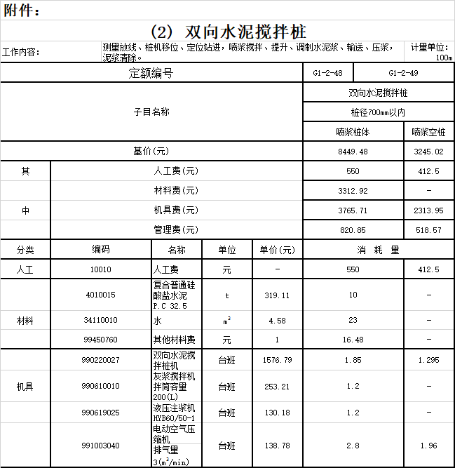 粵標(biāo)定函〔2020〕213號(hào)近期我站研究分析了廣東省建設(shè)工程定額動(dòng)態(tài)管理系統(tǒng)收集的意見(jiàn),現(xiàn)將有關(guān)《廣東省城市地下綜合管廊工程綜合定額(2018)》“超深大直徑雙向深層水泥攪拌樁”調(diào)整內(nèi)容印發(fā)給你們,調(diào)整內(nèi)容與我省現(xiàn)行工程計(jì)價(jià)依據(jù)配套使用,請(qǐng)遵照?qǐng)?zhí)行。在執(zhí)行中遇到的問(wèn)題,請(qǐng)及時(shí)反映。 附件:《廣東省城市地下綜合管廊工程綜合定額(2018)》動(dòng)態(tài)調(diào)整內(nèi)容廣東省建設(shè)工程標(biāo)準(zhǔn)定額站