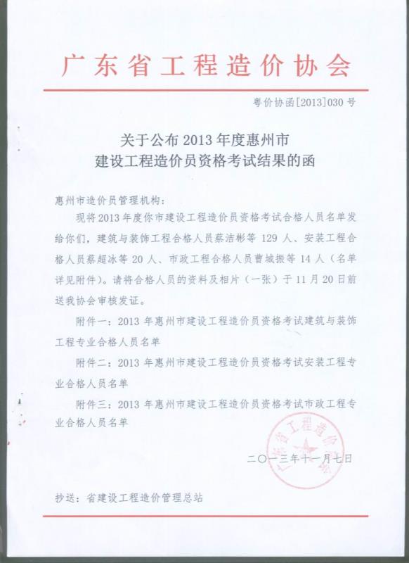 惠州市建設工程造價協(xié)會(簡介) 聯(lián)系電話:0752-2101515,2101357 地址:惠州市江北21號小區(qū)三新北路58號四樓